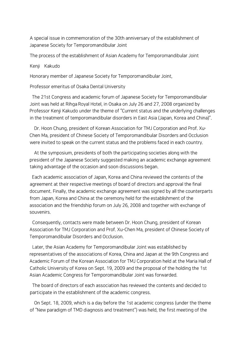 The process of the establishment of Asian Academy for TMJ