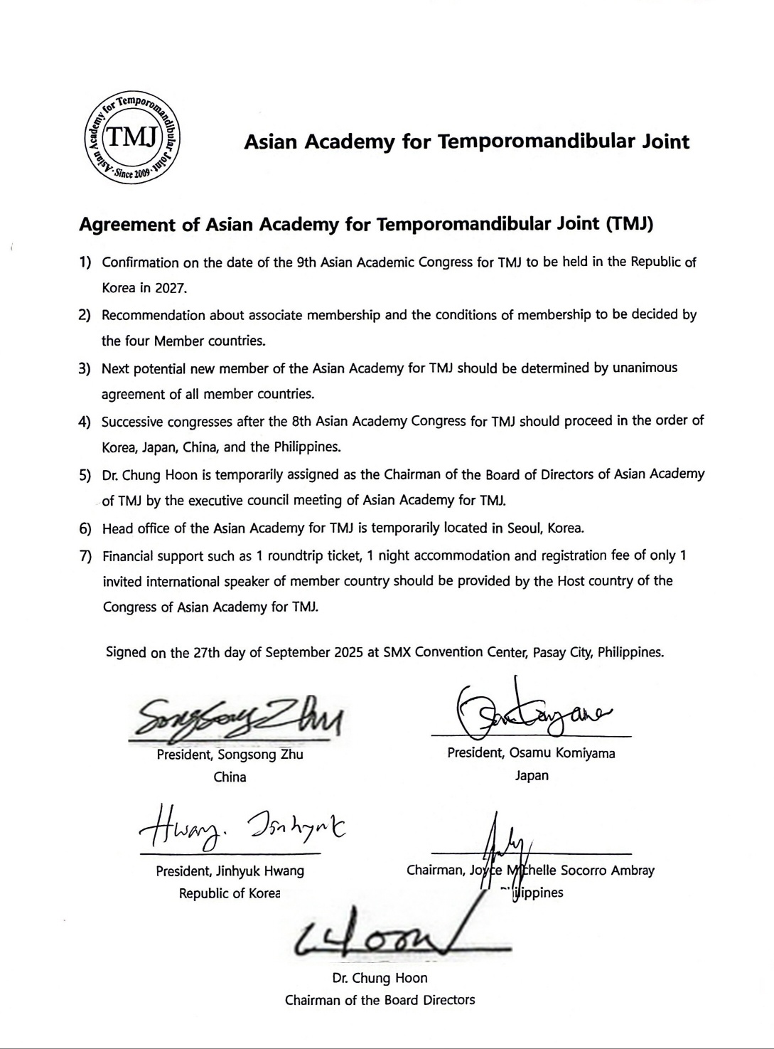 Agreement of Asian Academy for TMJ on October 20, 2023
